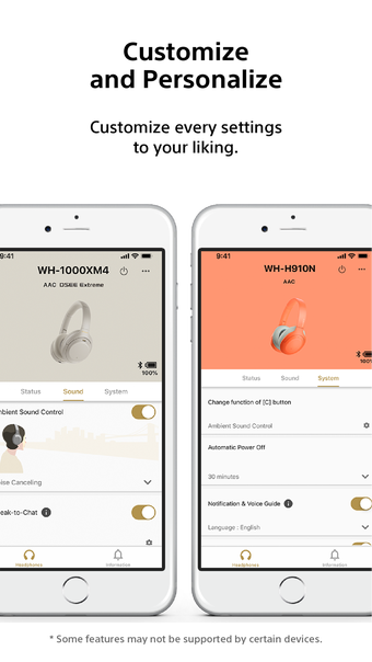 Sony Headphones Connect wymaga systemu iOS 12.1.2 lub nowszego. Obecna wersja programu to 9.2.0 i można go uruchomić w języku niemieckim, rosyjskim i fińskim.